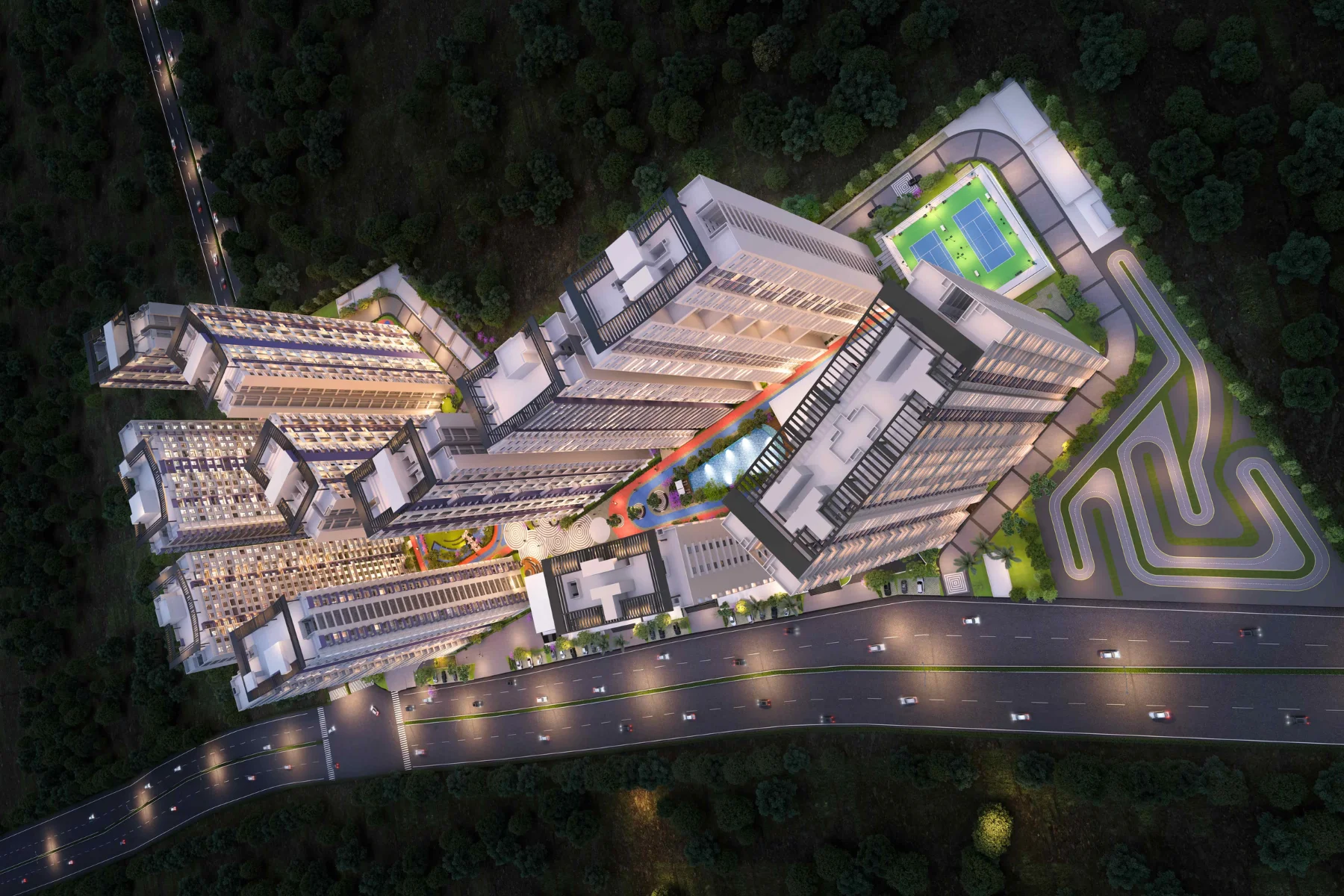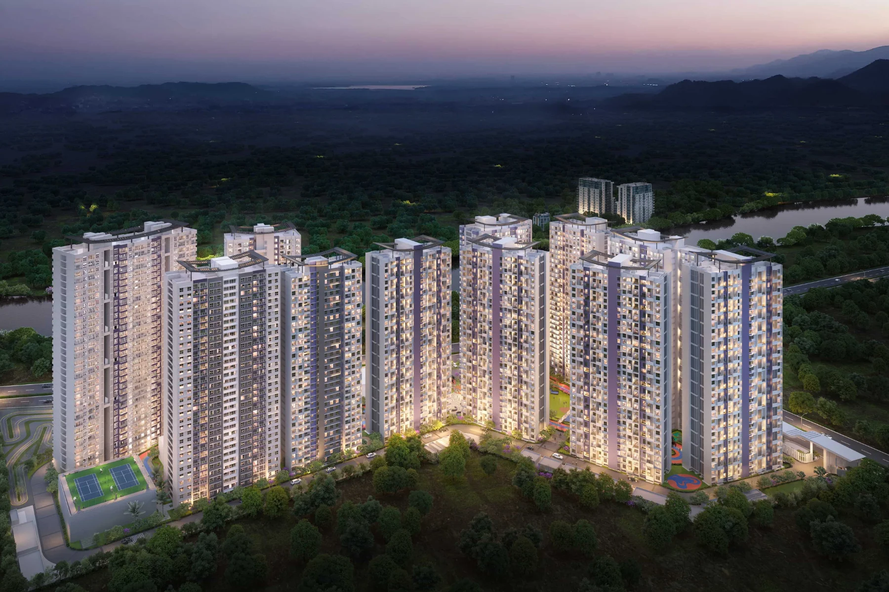 Nine contemporary towers with premium lifestyle amenities and scenic views.
